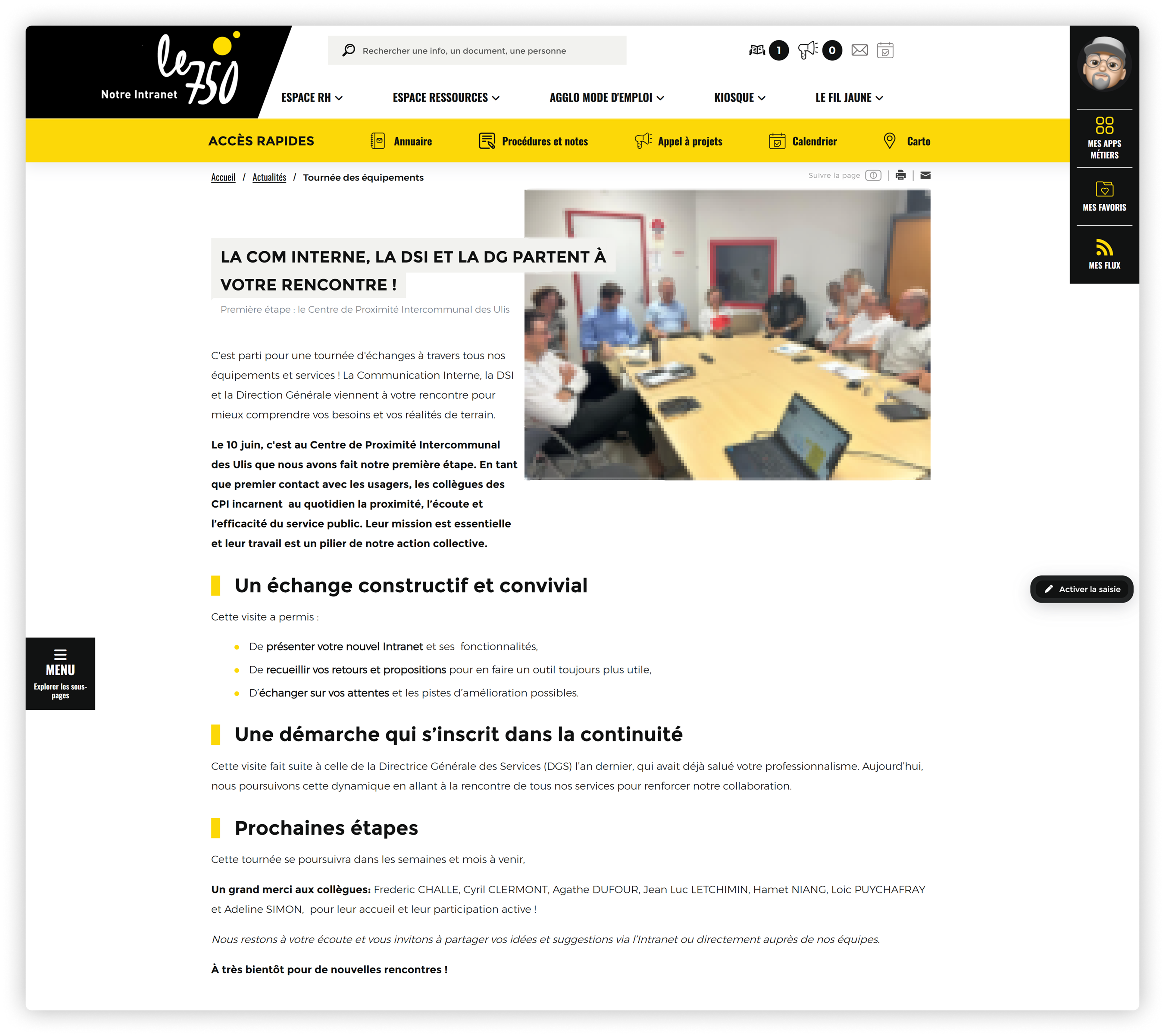 Présenter l’intranet dans les services permet d’expliquer l’outil en situation réelle, avec les besoins spécifiques de chaque équipe. Cette proximité facilite les questions et l’adhésion.